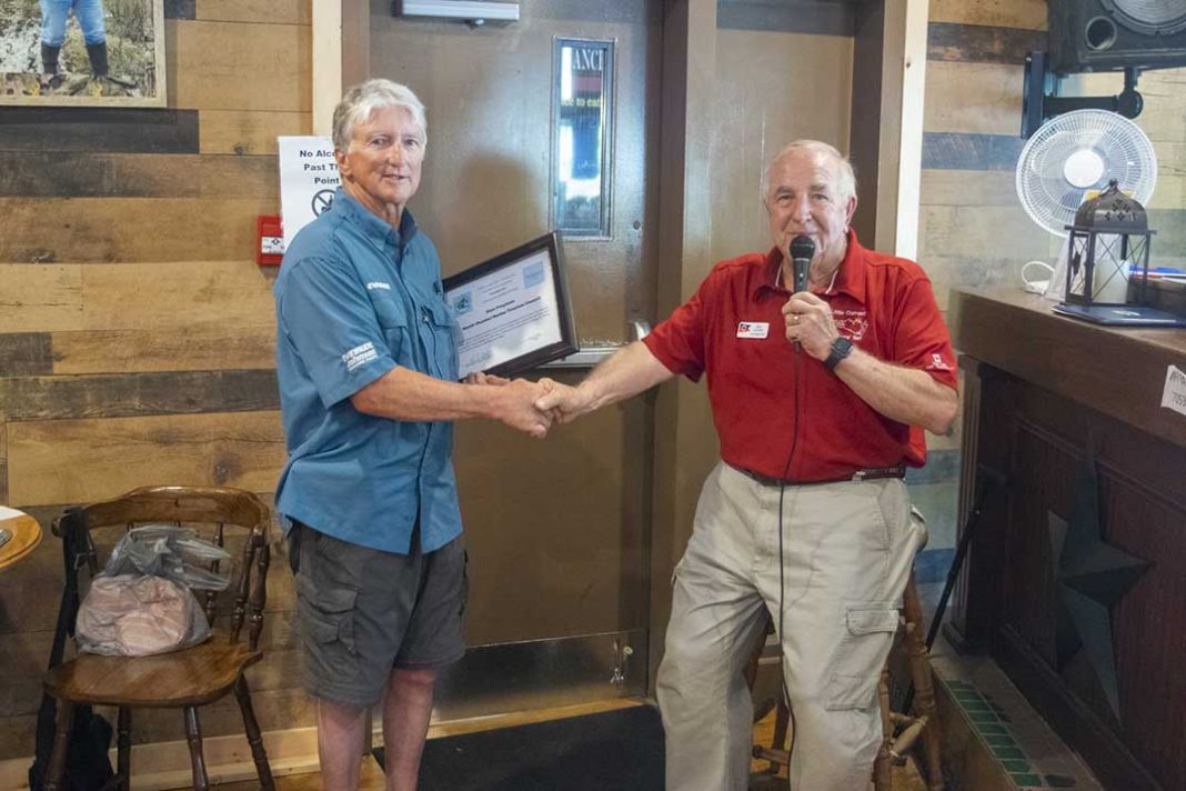 Mr. Eaton acknowledged Glen Parsons and his boat Last Resort for having the most consecutive check-ins to the program, even text-messaging or calling Mr. Eaton when he was not within radio range. Unfortunately, his cruising days are over due to boat problems, but Mr. Parsons still came to be part of the festivities on this day.