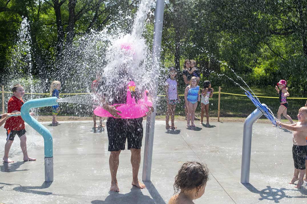 Zachary, who had waited for hours to be the first on the splash pad, could hardly contain his excitement. What he lacked in lengthy responses to this reporter’s questions he certainly made up for in enthusiasm.