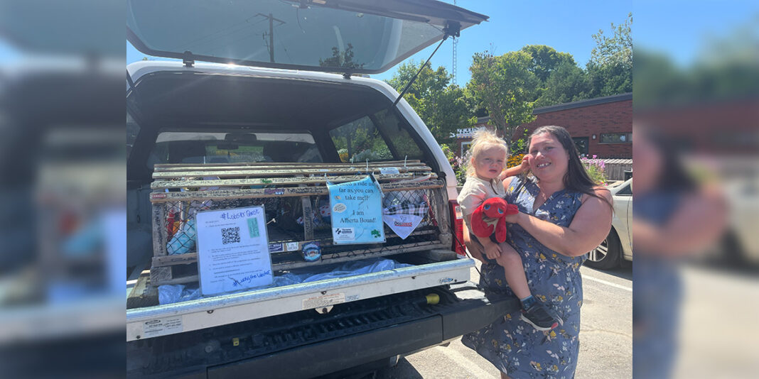 Elizabeth Beattie of Honora Bay was scrolling Facebook one morning when she happened upon a post from a family in Meaford asking for help getting Lucky from Tobermory to Manitoulin Island. She recalled thinking ‘that’s interesting,’ and kept on scrolling. The thought of helping Lucky was intriguing, though, and thinking it might be a fun activity for her two-year-old son Wren and mom Bonnie to take part in, she booked them all a walk-on ticket for the ferry and made arrangements to meet the Kaminski family and Lucky in Tobermory.