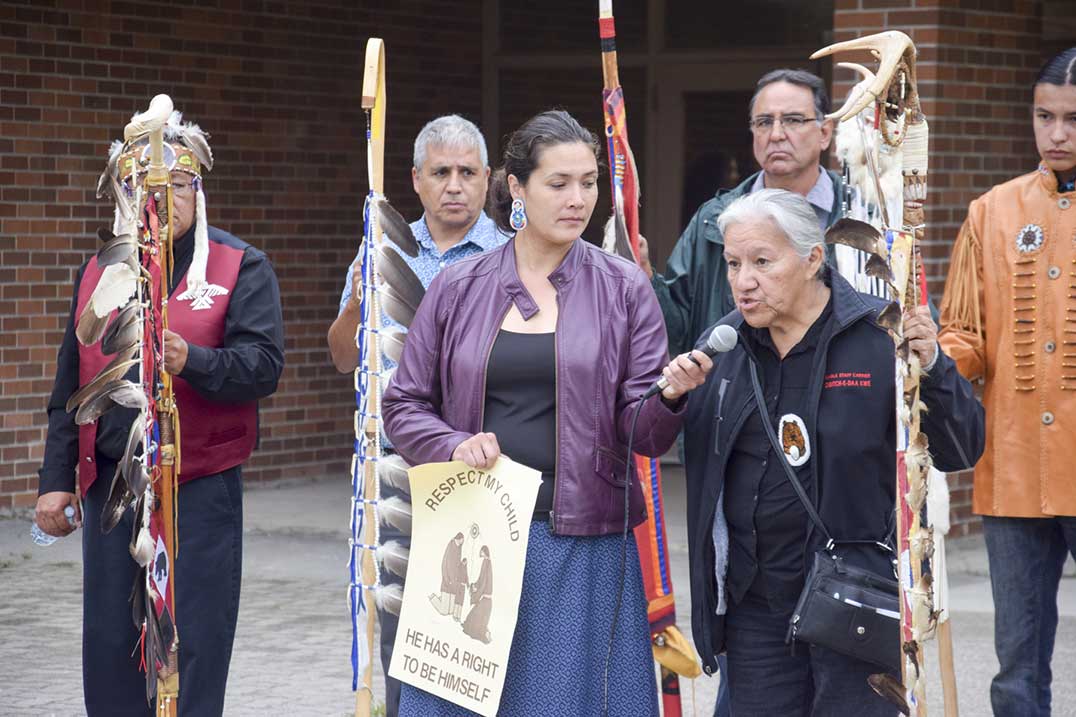 First Nation RDSB trustee Grace Fox then addressed the crowd. “The work of a trustee conforms to the Education Act,” she said. “You are given your orders as to how to behave, what to say, where to be. As an Anishinabe kwe it has hard to be an Anishinabe kwe within a corporation.”