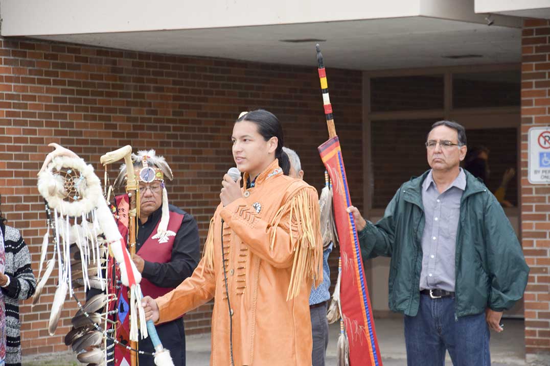 Once at MSS, the assembly gathered in front of the main entrance doors where the eagle staffs lined up.