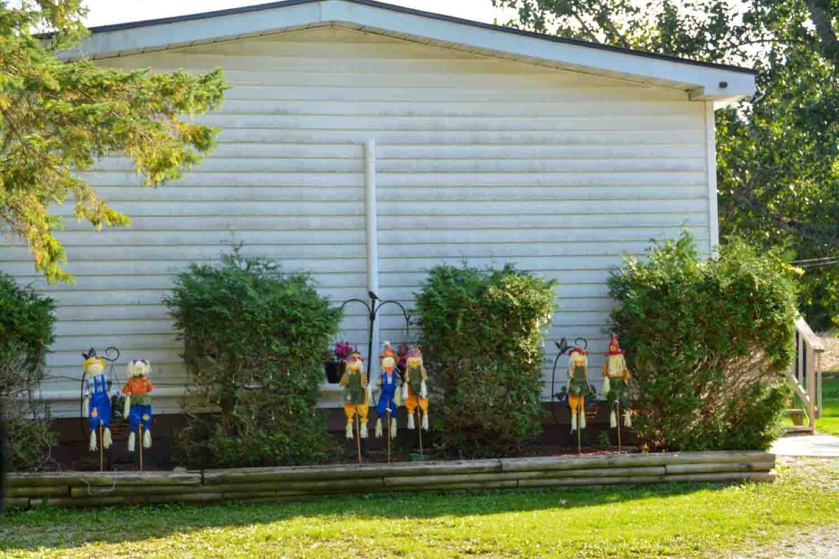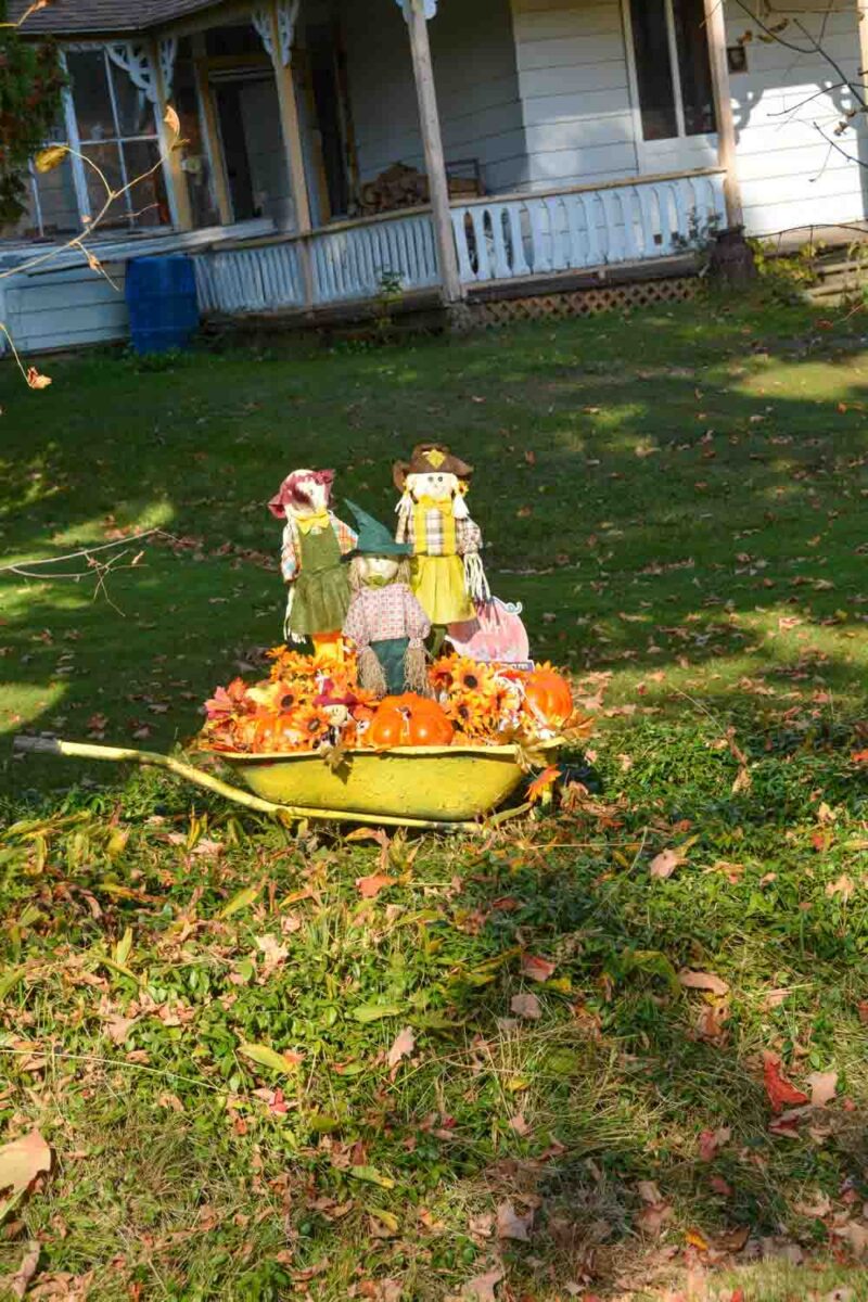 Downtown Kagawong has great displays around the corner anchored by the Chocolate Works. In Honora, the Bond Family has once again filled their yard with whimsy (also involving tractors.)