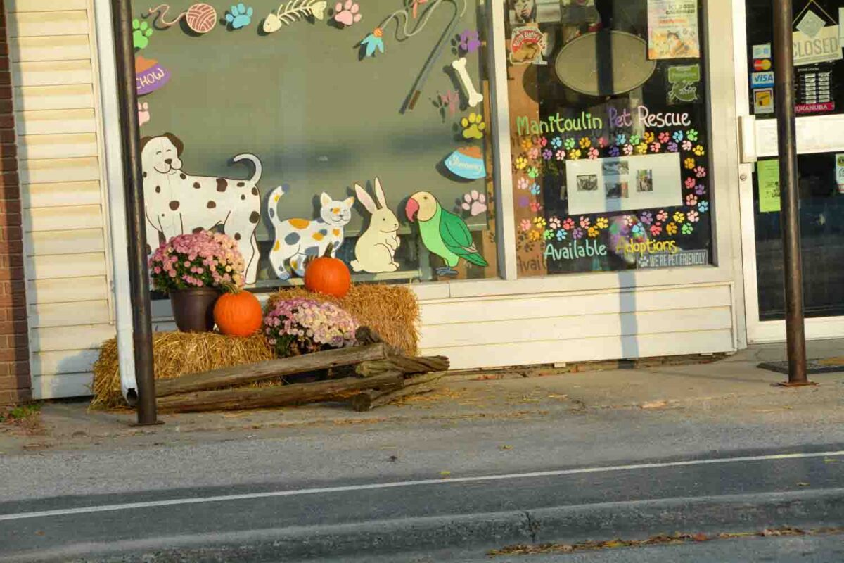 Some things to watch for: nicely decorated farm gates on Highway 540 just before Ice Lake (Kagawong side,) the Beange farm gate (kitty-corner from Burt’s Country Meats), all through Providence Bay, but particularly the main drive into town.