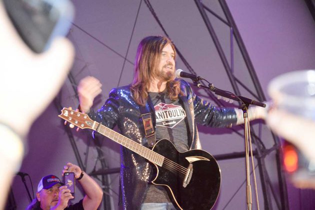 Aaron Goodvin has made the leap from songwriter to all-round performing artist and Manitoulin Country Fest came out the winner. Mr. Goodvin is an up and coming mover in the country music scene and he had the crowd bouncing as a lead up to the force of nature called Billy Ray Cyrus.