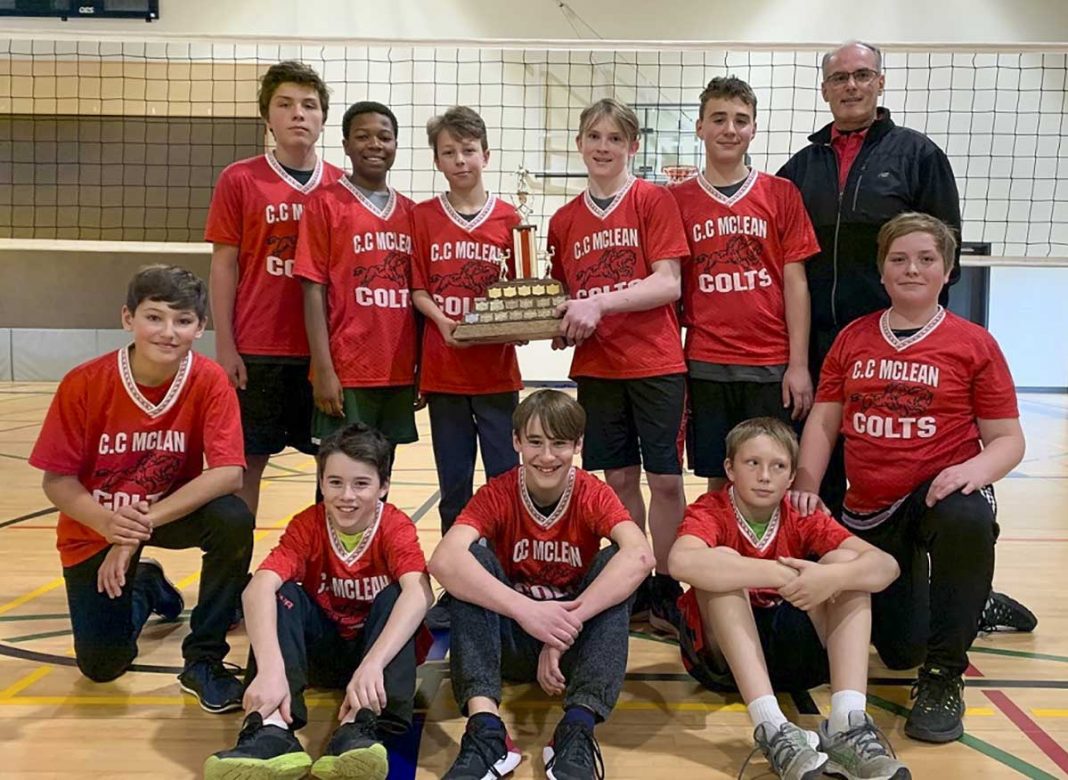 In the boys’ division, C.C. McLean took first place, defeating Little Current Public School in the championship match to win the title. “Our boys team won two and lost two in the round robin format, losing close matches to CMPS and LCPS, knowing we might see them again in the playoff round,” said Dan Smith, coach of the C.C. McLean team. “We saved our best playing for the semi finals and the championships, beating CMPS 25-18 and then defeating LCPS in the championship in two straight games (15-12 and 15-10).”