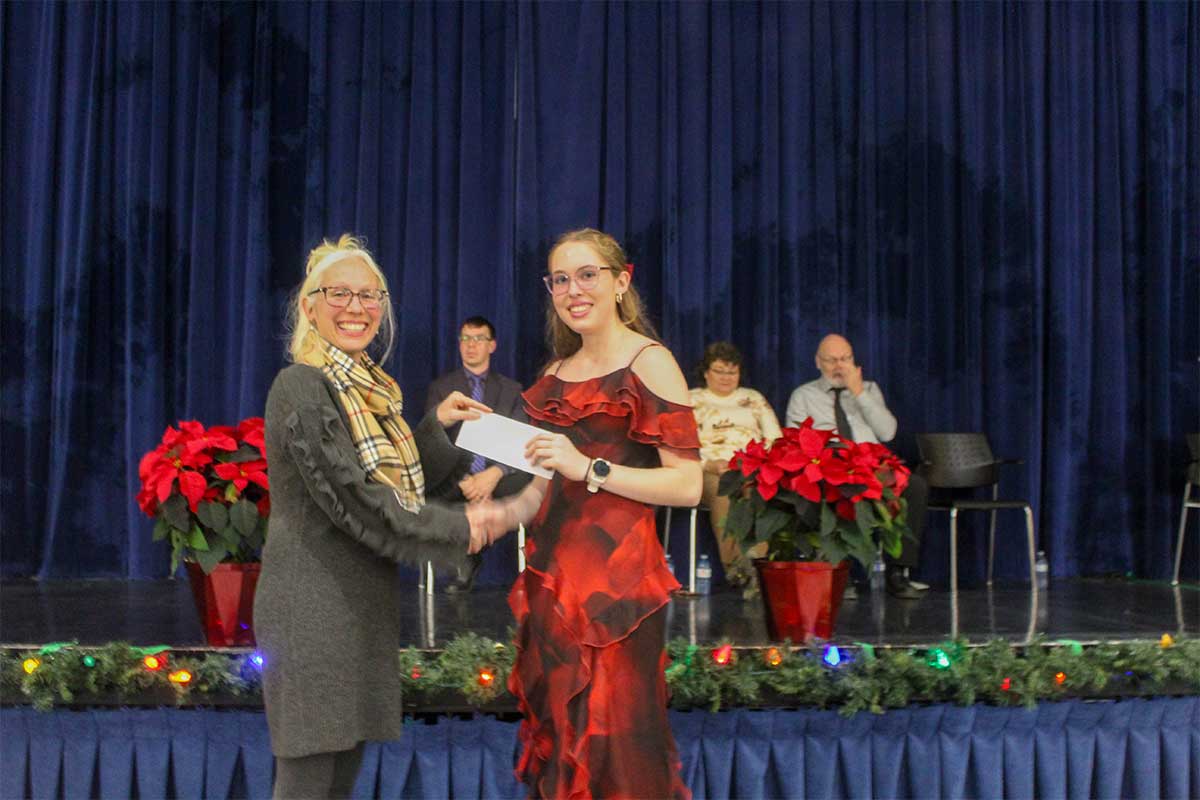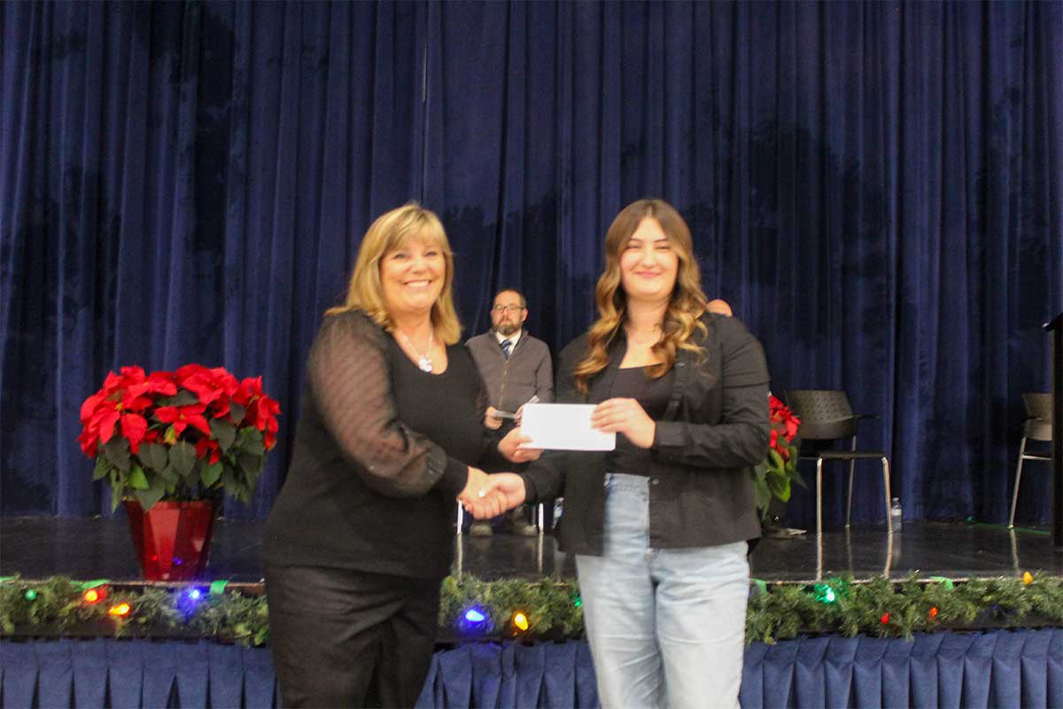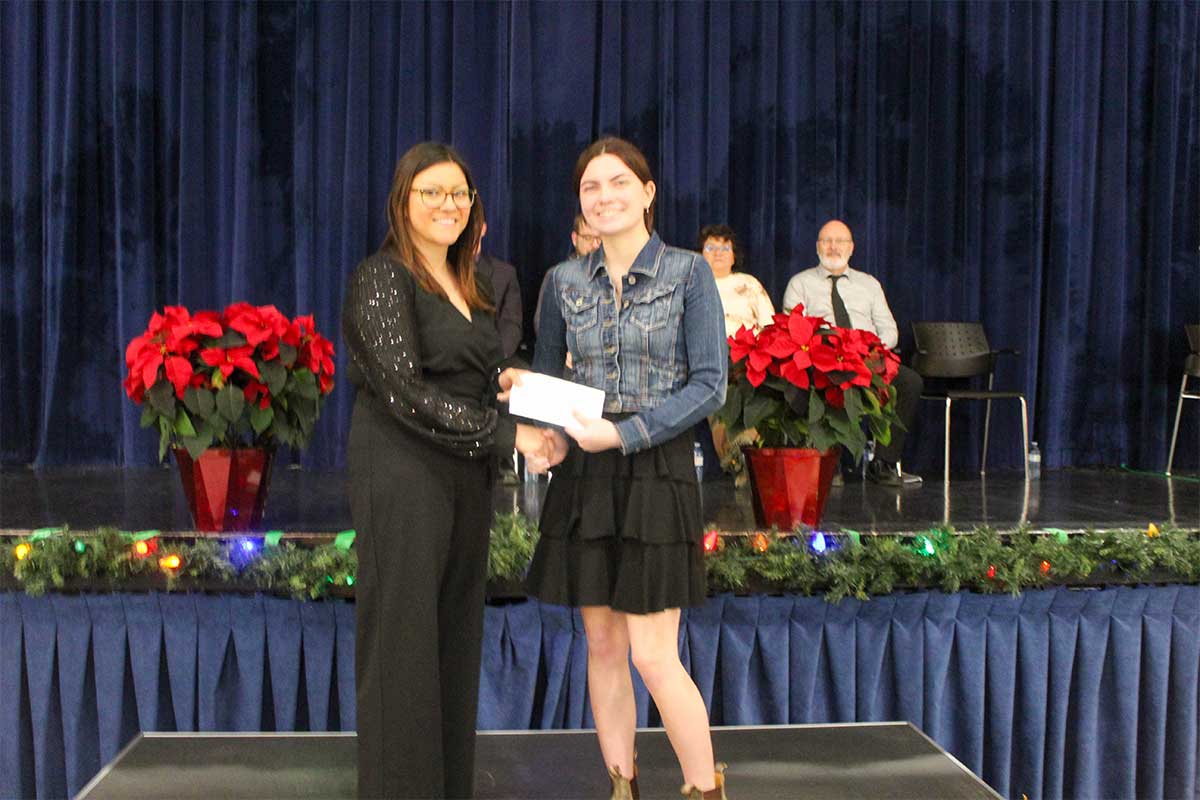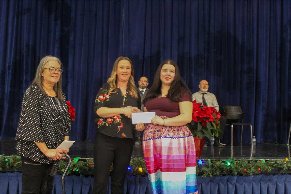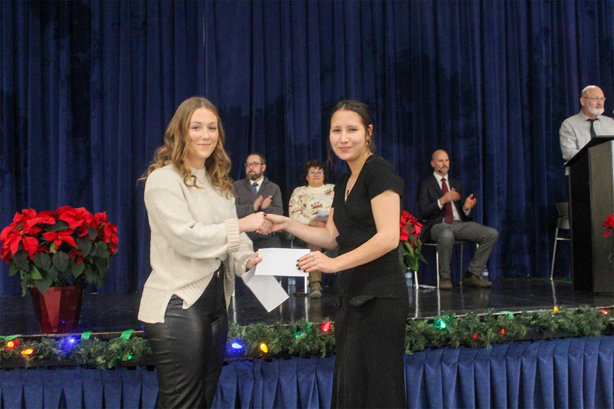 Donated by the Argmann family to two graduates continuing post-secondary education. Presented by Mrs. Samantha Cooper to Nevaeh Harper and Ryann Moore.