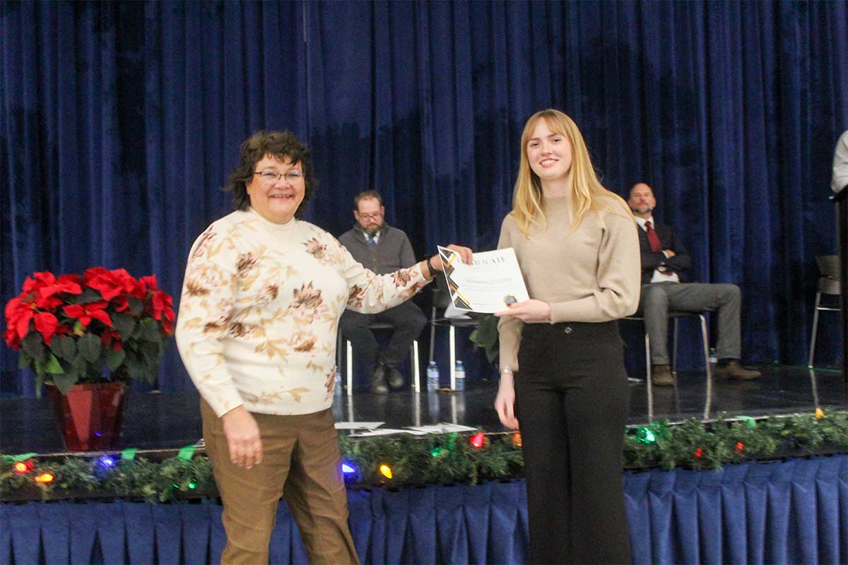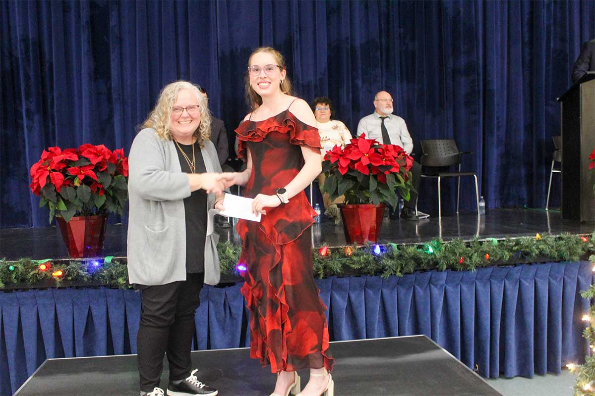 Presented to a deserving graduate continuing post-secondary education. Presented by Dr. Angela Johnston to Autumn Davy.