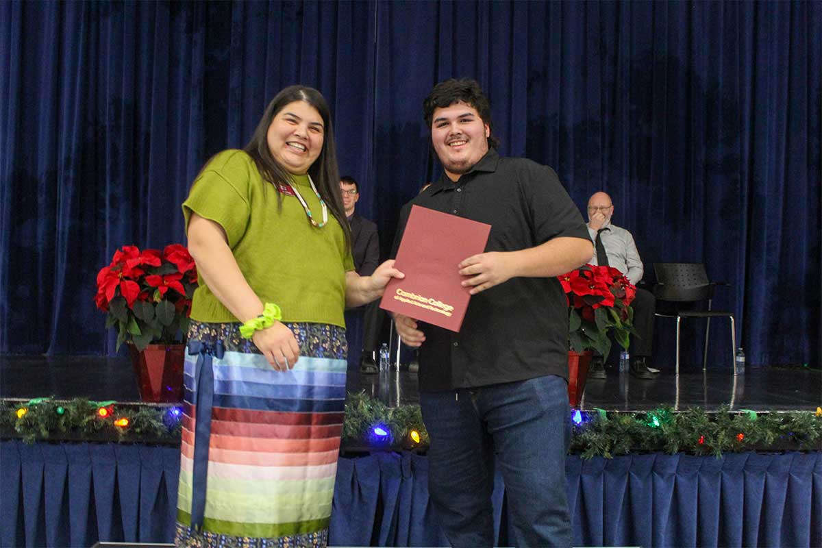 Given by Cambrian College to a deserving graduate continuing post-secondary education and for academic achievement. Presented by Ms. Nancy Burke to Johnny Antoine.
