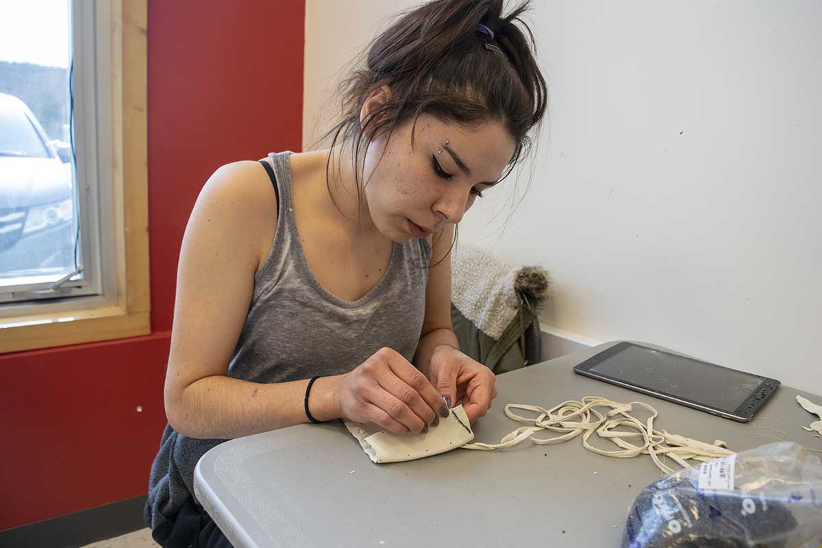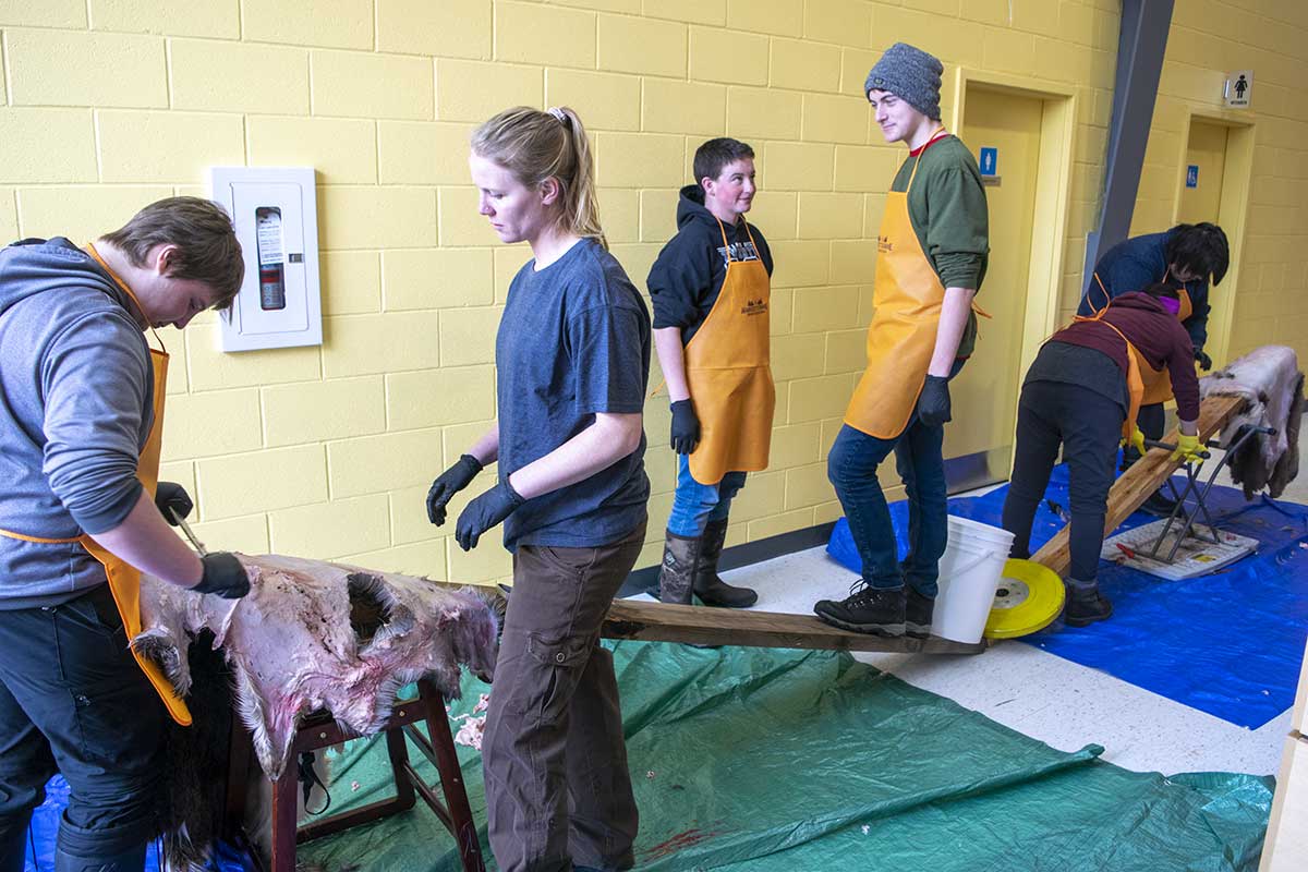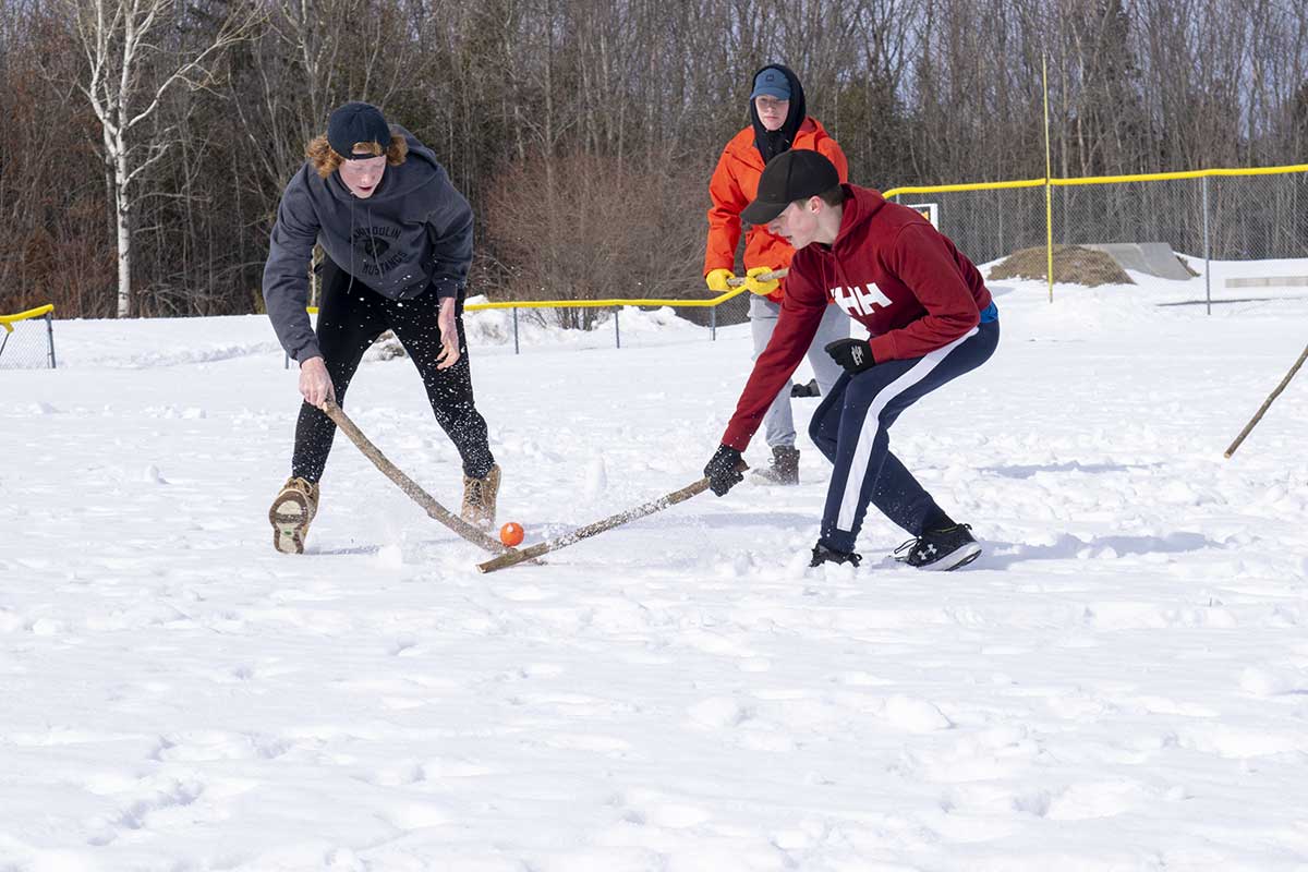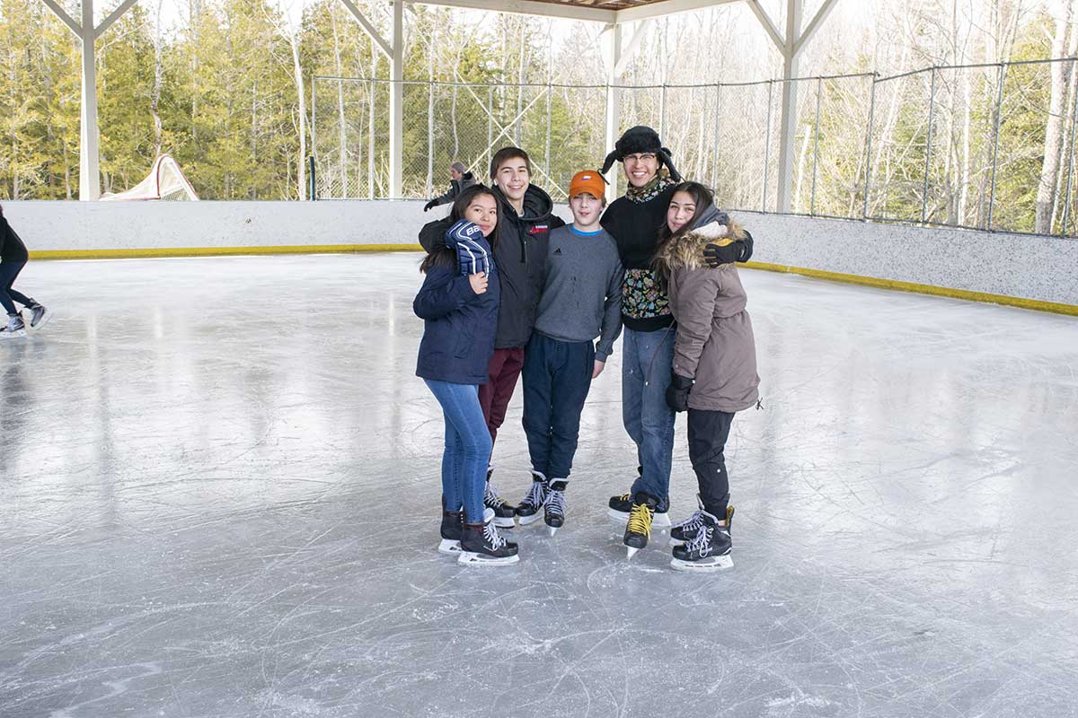 The many activities at the one-day event included a land-based teaching and snowshoe exercise with Noojmowin Teg healthy living children’s co-ordinator Nelson Wood, ice hockey, stickball, pole push, skating, beading, dreamcatcher making, medicine pouch creation and hide skinning and stretching with Noojmowin Teg facilitators Kristin Bickell and Courtney Kurek.