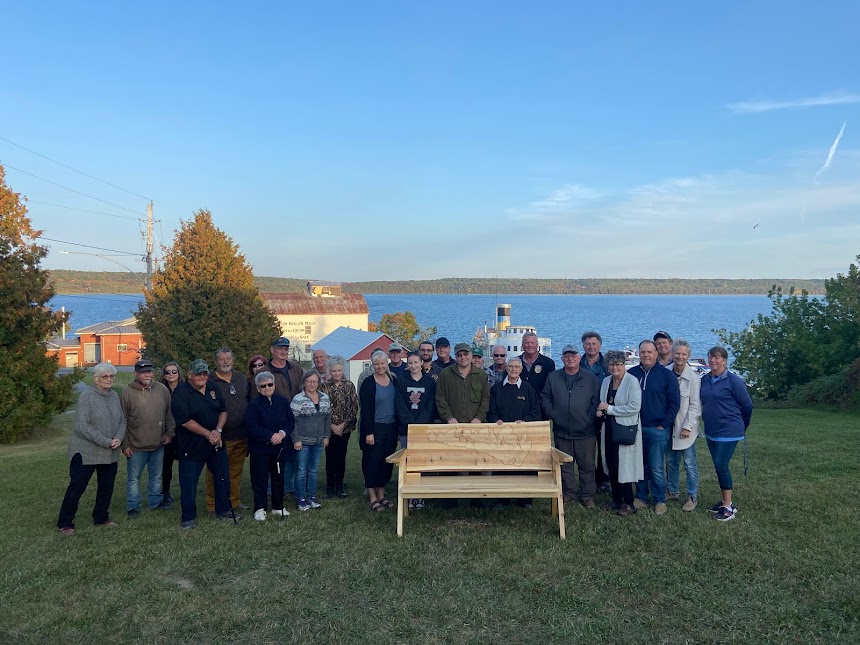 “Even though he stepped down. Paul was still around to help out with some of our events or he would drop by the office to learn about our new projects and just be an all-around helpful presence in the organization,” shared Ms. Deschenes. “Paul spent so much time helping others and being an integral part of the community and it is easy to forget that most of what he did was volunteer work. He was always there and willing to lend an ear or helping hand. We couldn’t have thanked Paul enough for the amount of work he did for Manitoulin Streams and our surrounding communities. So, on that note, in conjunction with the Manitowaning Senior Golf Club, we thought that a memorial bench overlooking the water in the bay in Assiginack was appropriate since he contributed a lot to this community and Manitoulin Streams through his volunteerism, work and play.”
