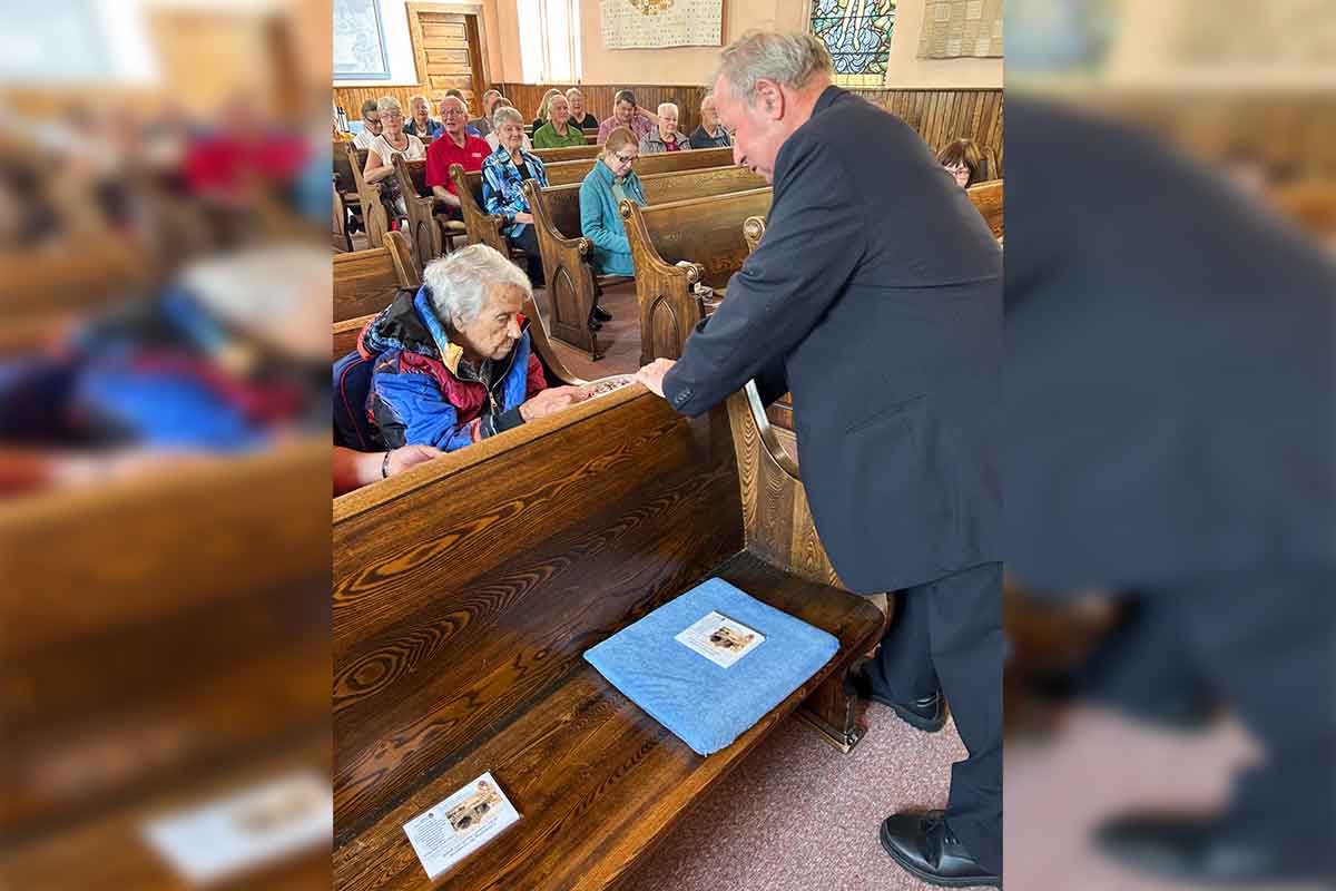 Another fun fact: Dr. George Pidgeon was the first moderator of the United Church of Canada, taking on this role in 1925 at the time of church union. He was also the grandfather of the late Bill Caesar of White’s Point and the Caesar family loaned a photo of Rev. Pidgeon, together with the fountain pen used to sign the agreement to unite the denomination. These were on display on the communion table and, afterwards, in the fellowship hall.
