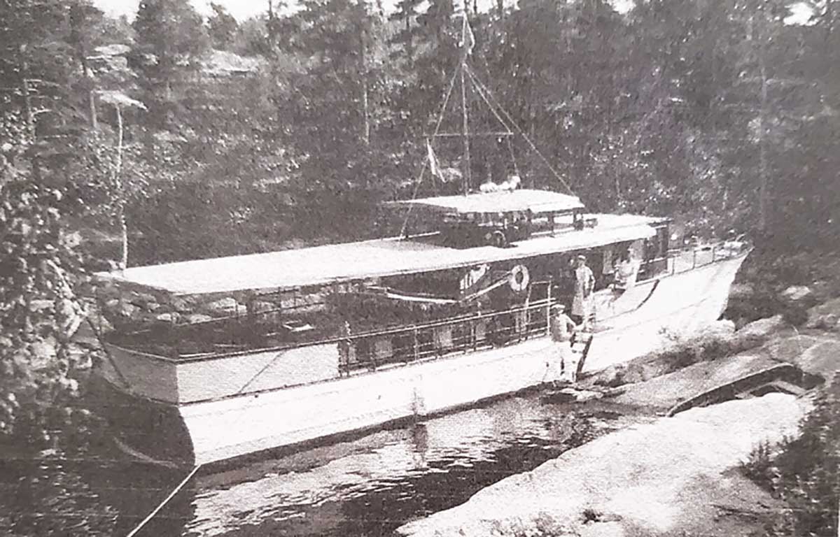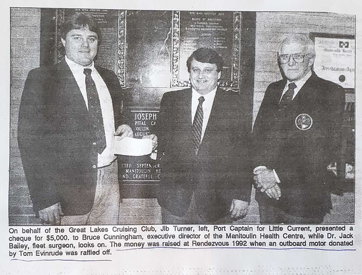 Around the time of their hiatus (perhaps in 1916 or 1917, recalls a long-time friend of the family), Mr. and Ms. Evinrude began to explore the Great Lakes in a 42-foot cruiser named Bess Emily with their young son Ralph. Their trips (in that cruiser as well as its successors Bess Emily II and III) took them to the North Channel and particularly Little Current, a cruiser’s paradise that captured their hearts.