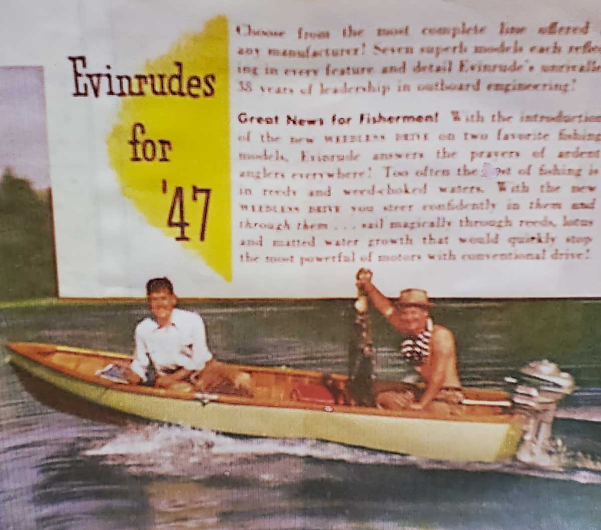 By 1909, the Norwegian-American had created a 1.5 horsepower model that sold out its limited production run in very little time. His life partner Bess was also his business partner and came up with the attention-grabbing slogan, ‘Don’t row! Throw the oars away! Use an Evinrude motor.’