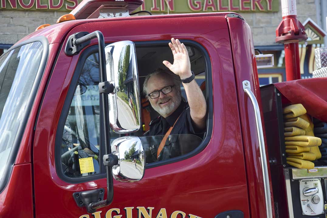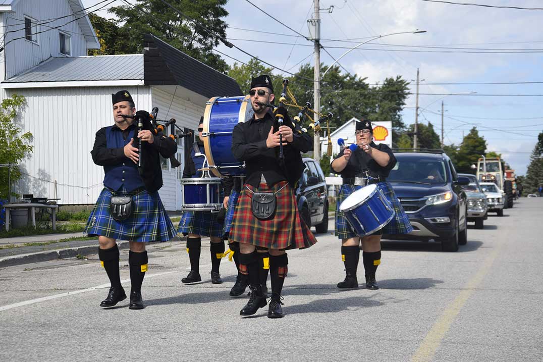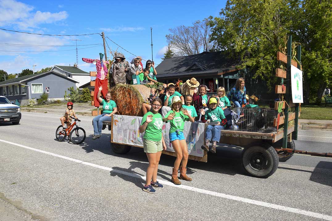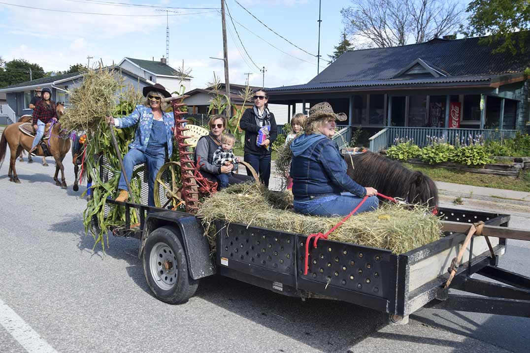 The parade was led by a large red pumper of the Assiginack Fire Department followed close behind by the skirl and thump of the Lockerby Highlanders Pipe and Drum Corps. The floats of the 4-H Club, Kicking Mule Riding Stable and the Assiginack Horticultural Society were complemented well by a number of vintage vehicles, young cyclists and followed up with a good contingent of mounted riders.