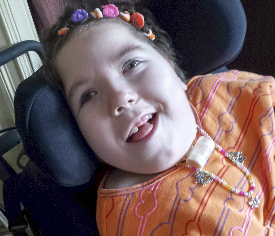Emily is blind, developmentally delayed and at 12-years-old she is still similar to a newborn in that she will never walk, talk, crawl or eat by mouth.