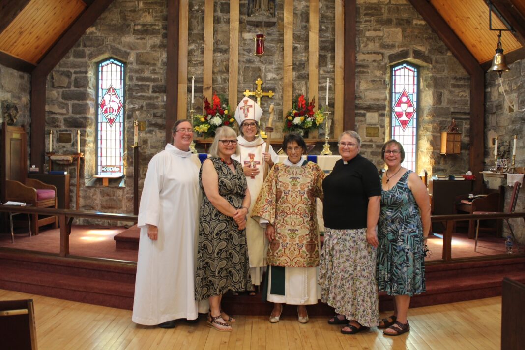 For the celebration Pastor, Catherine Hazlitt and the five Anglican congregations of Manitoulin met at Mindemoya, joined by Archbishop Anne Germond as preacher and presider. The Archbishop’s sermon noted how St. Francis of Assisi, in the thirteenth century, carried stones into the forest to rebuild a chapel. Likewise, ninety years ago the founders of St. Francis Church volunteered their time and effort during the difficult years of The Great Depression to clear the land, quarry the stone, cut the wood and build the walls – a work of labour and love.