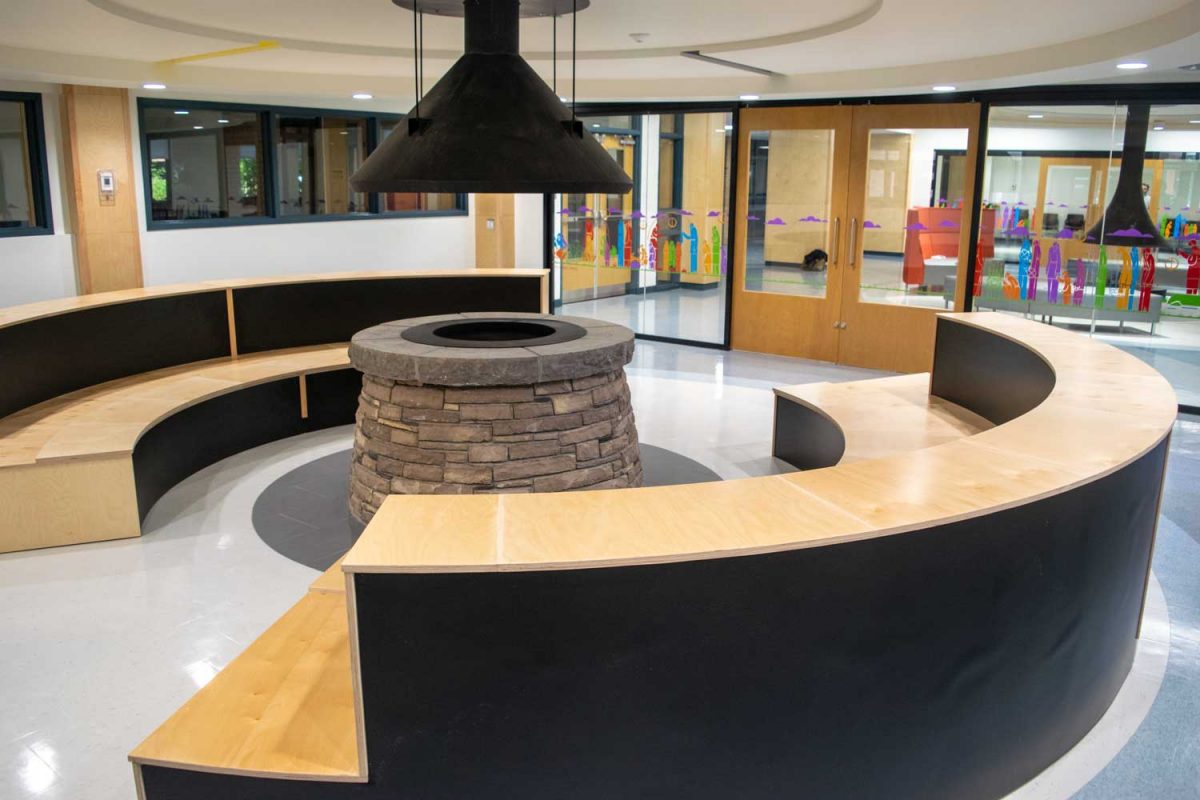 The smudge room, which can accommodate a class of 30 students when physical distancing restrictions are not in effect, also has a direct exit to the school’s centre courtyard.