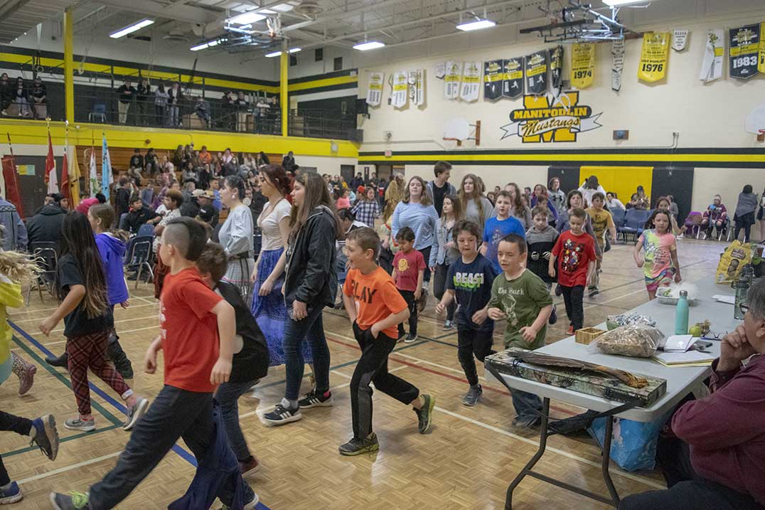 The MSS powwow, which carried the theme of ‘Kinomaa Aadzowin’ or ‘school spirit,’ was a well-attended event. Students had travelled from Charles C. McLean Public School in Gore Bay, Central Manitoulin Public School in Mindemoya, Little Current Public School and M’Chigeeng’s Lakeview School to participate in the festivities.