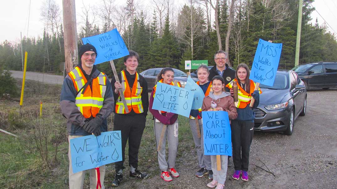 “Students want to raise awareness about the importance of protecting water and they wanted to do this in a strong show of solidarity,” said MSS Principal Jamie Mohamed, bedecked in a bright yellow safety vest. “Participants have been gathering water from all over Manitoulin Island and to carry with them on their journey. They are also fundraising through pledges with proceeds going to support clean water projects around the world through WE.org.”