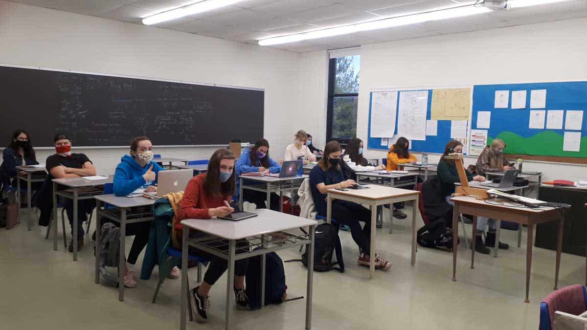 All online learners said that the online setup closely met their expectations. One student wished that there would be “more attention to online learners,” but they realize that it is hard to juggle both groups of students. They would also rather not have the Google Meet placed on the smartboard for all to see. Both online and in-person learners did vocalize that it is slightly confusing to have teachers using either D2L (digital learning environment) or Google Classroom, and no one is on the same page of what to use. Online learner and Grade 11 student, Mary Hore, observed that things have improved in the last two-and-a-half months, noting that “the teachers make sure you can see what is happening in class. They have improved on the technical situations, such as learning how to show two things at once.”