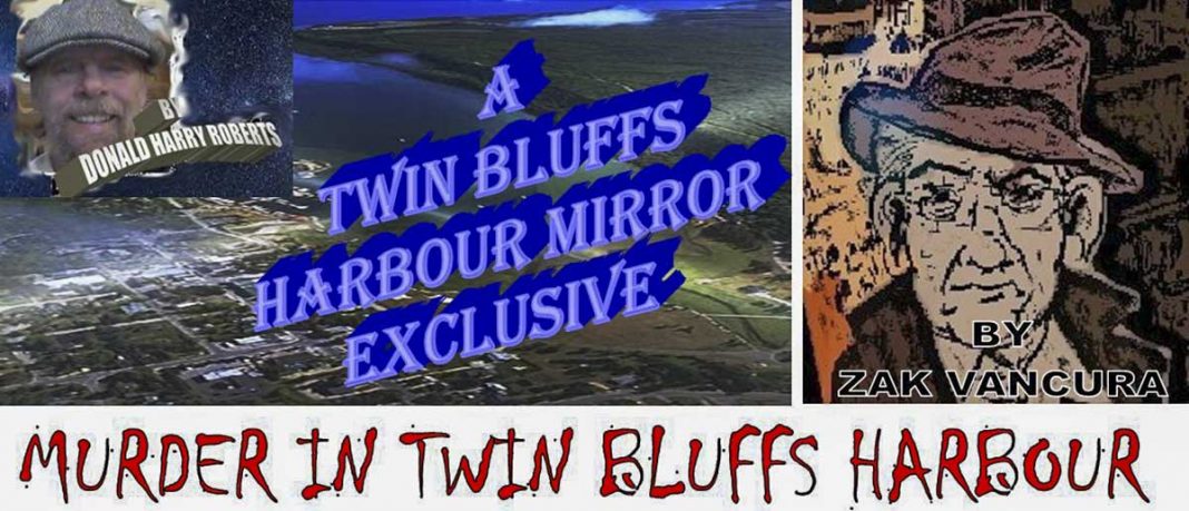 EDITOR’S NOTE: The Manitoulin West Recorder is publishing the pilot episode of a mystery serial, ‘Murder in Twin Bluffs Harbour’ told by news reporter Zak Vancura, written by Donald Harry Roberts (of Barrie Island) this week. He has based his locale, Twin Bluffs Harbour on Gore Bay, duly disguised with fictitious characters and renamed streets and businesses.