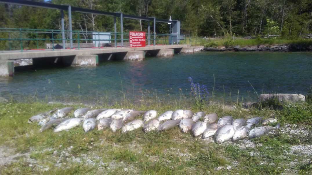 To report a fish die-off to MNRF, call 1-800-667-1940 on weekdays from 8:30 am to 5 pm. If a caller suspects that the fish may have died due to a spill or disease, they are asked to contact the Ministry of the Environment and Climate Change’s spills action centre at 1-800-268-6060.
