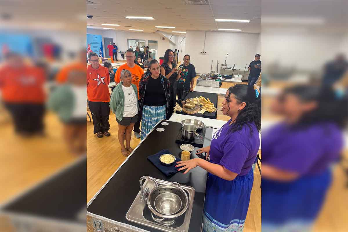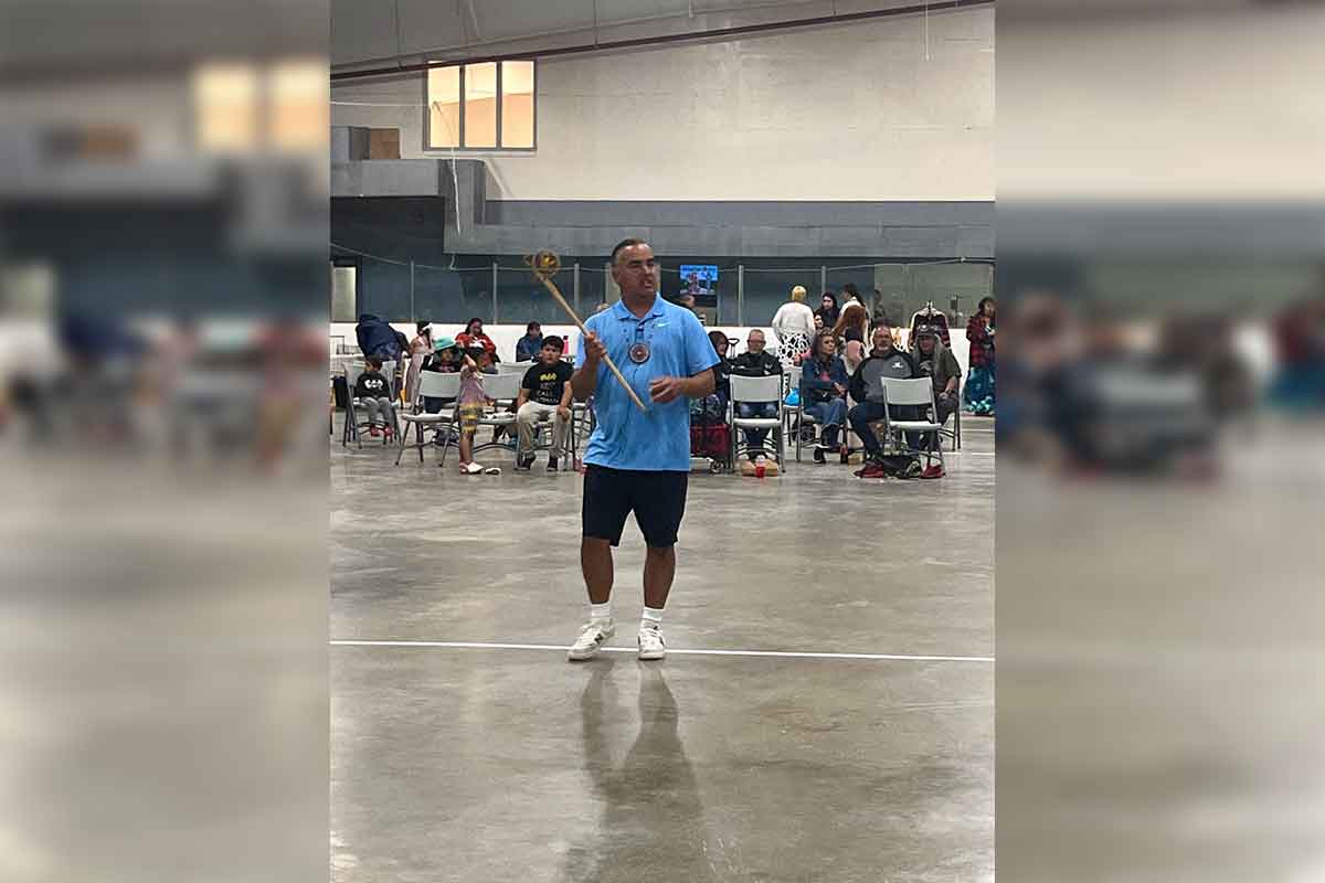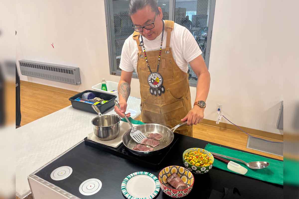 Anishinaabe Chef Joseph Shawana, left above, cooks up some great eats during a Two Nations celebration hosted by Wiikwemkoong Tourism. Iacha Smith, a Haudenosaunee chef from Six Nations was part of the attractions at the annual Wiikwemkoong Jiingtamok this past weekend. photos by Alicia McCutcheonAnishinaabe Chef Joseph Shawana, left above, cooks up some great eats during a Two Nations celebration hosted by Wiikwemkoong Tourism. Iacha Smith, a Haudenosaunee chef from Six Nations was part of the attractions at the annual Wiikwemkoong Jiingtamok this past weekend. photos by Alicia McCutcheonJohn Hunter, an Anishinaabe lacrosse instructor from Minnesota, demonstrates proper form.Spot dances are always a hit.What would a powwow be without drums?