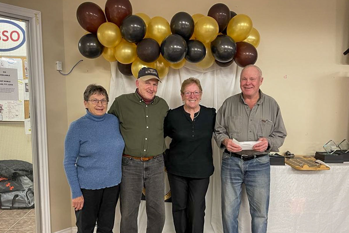 Winning the second event championship at the annual mixed bonspiel held at the Mindemoya Curling Club this past weekend was the rink of, from left in photo Kathy and Doug King, Bev and Dave McDermid.