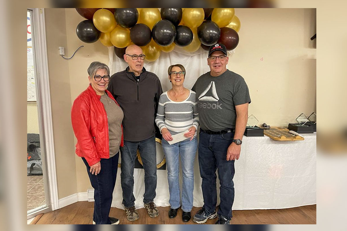 The third event winners in the annual Mindemoya Curling Club mixed bonspiel included from left in photo, Sherri and Gord Louttit, Sherry and Dan Forest.
