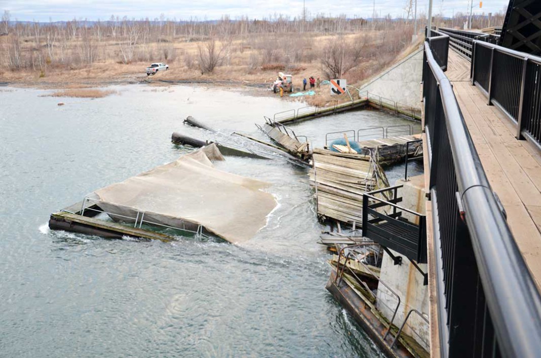 The collision of the cages with the swing bridge at Little Current were determined by the Ministry of Transportation to have not damaged the structure and traffic was not hindered in crossing the bridge.
