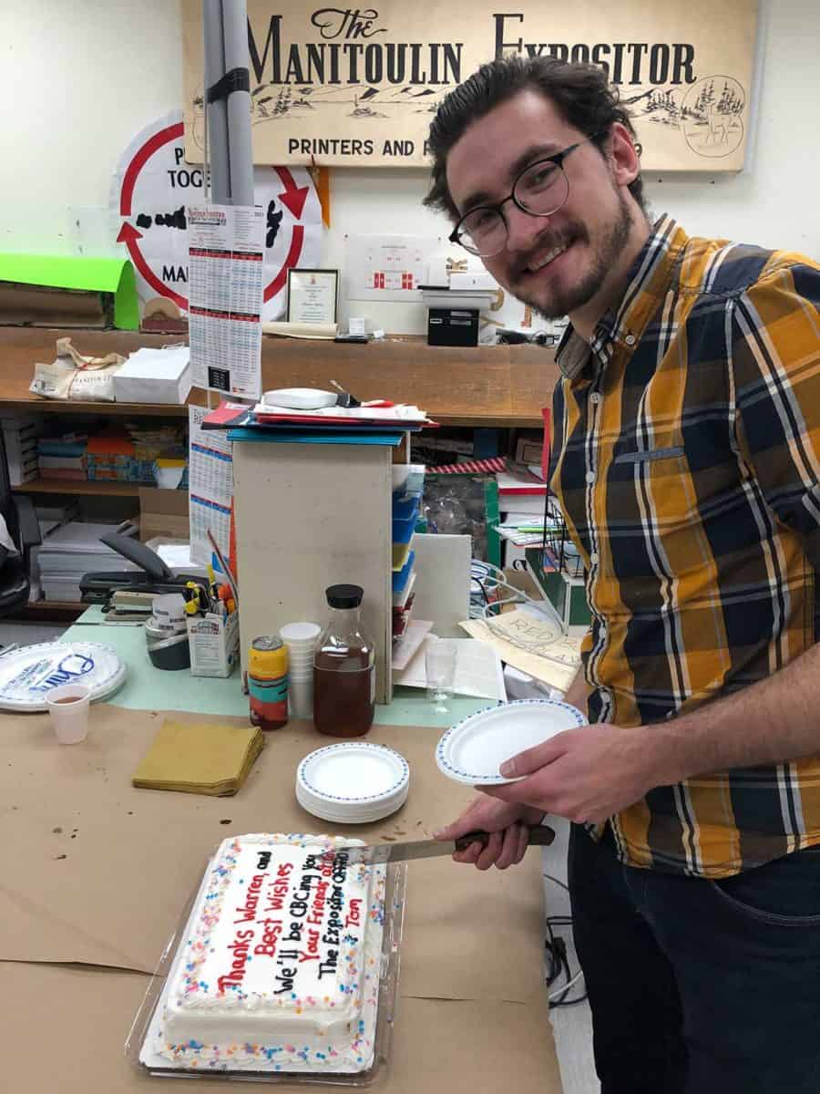 Mr. Schlote received a keychain created by The Expositor’s talented salesperson and side-gig jewellery creator Robin Anderson bearing the letters WWRA. “That is one of the greater pieces of advice I received when I first started at the newspaper,” he said. The paper’s former owner, Rick McCutcheon, still takes part in the Monday flurry of activity that is production day, the day everything comes together to be sent to print. Mr. Schlote was warned to be fully prepared for a barrage of questions on many of the stories that week. Mr. McCutcheon has amassed a huge amount of information and experience in journalism over more than 50 years in the industry. That cache of information has been informed by Mr. McCutcheon’s genuine interest in everything and everyone around him and the impact of events on Manitoulin and has proven time and again to be an invaluable resource. The letters on that keychain Mr. Schlote will be taking with him will stand him in good stead in any journalistic endeavour—those letters stand for “what would Rick ask,” an Expositor reporter’s guiding mantra.