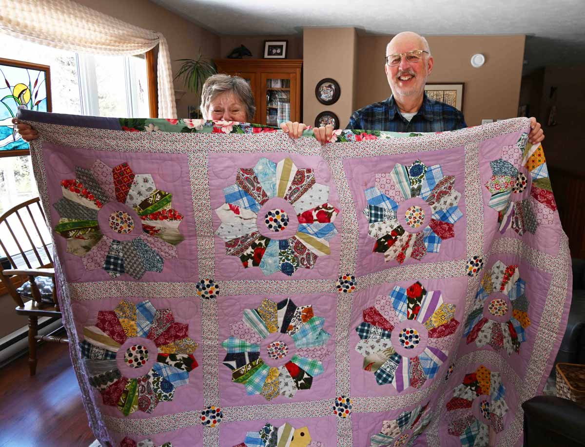 Mary-and-Floyd-display-the-last-quilt-made-by-Mary’s-grandmother,-the-Taxidermist