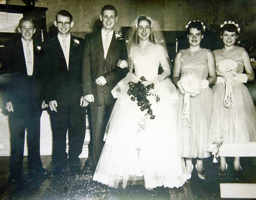 Austin and Bev were wed on October 10, 1958. “It was a cold nasty weather day with a strong wind. People were nearly blown away from the little Ice Lake Church as they approached. The Billings Hall held 200 people for the reception. Apart from the inclement weather, all went well. After the ceremony, the groom had to resume his chicken care duties so a honeymoon had to wait. “My dad and uncle had fixed up a small house beside our current home and they handed me the deed, saying ‘sign here.’ I guess they wanted us to stay on the farm.” The newlyweds lived there one winter.