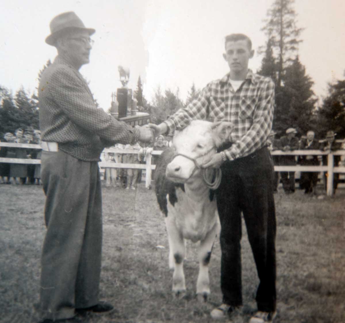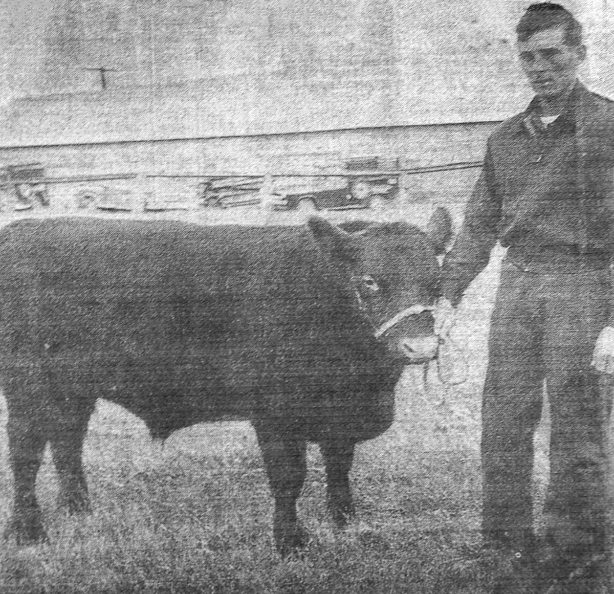 Jack and his winning calf for the Queen’s Guinea Calf Competition for senior 4-H club members on Manitoulin at the fair. Later, he took this calf to the Royal Winter Fair in Toronto.