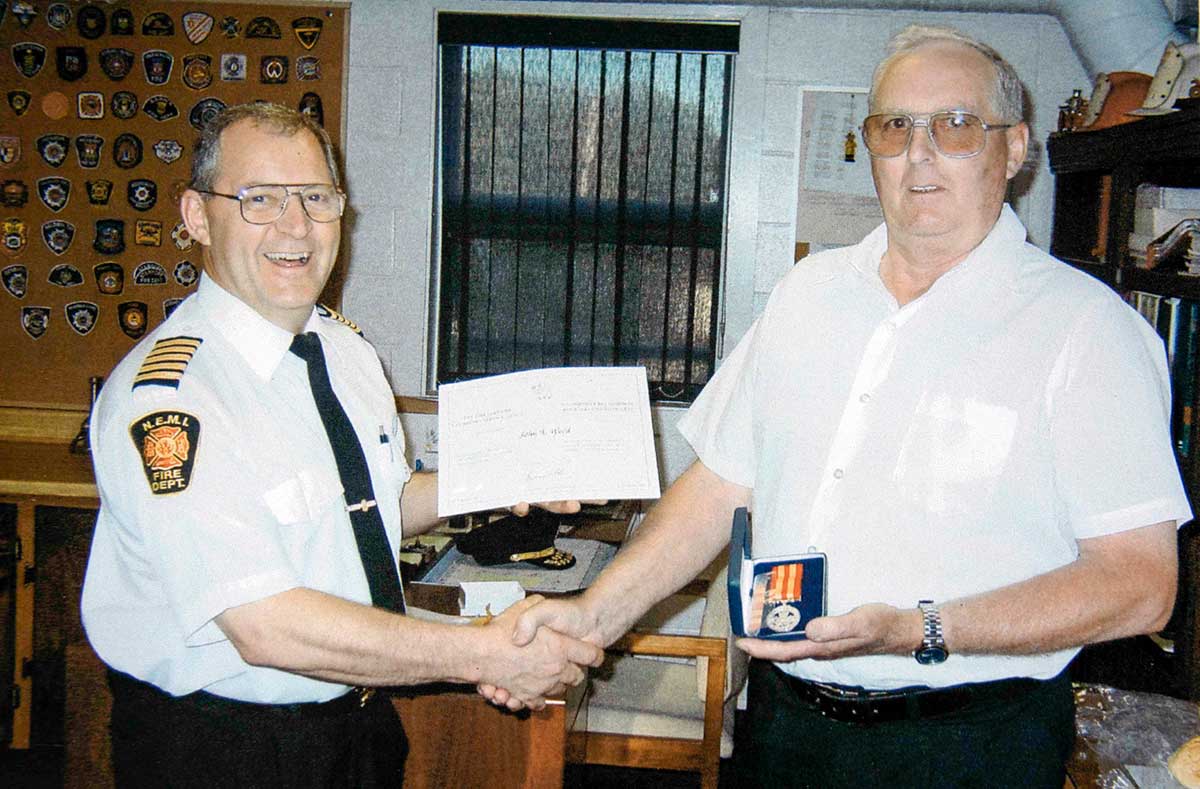 Jack started to drive the special needs school bus and did so for 23 years. Closer to the end of this term, these children were included in the regular bus system. Jack spent just as many years as a volunteer fire fighter, starting in 1960. He began in Sheguiandah and later volunteered in Little Current where Fire Chief Rick Milne gave him an award for those 23 years of service. Jack also did some of the snow plowing for Howland Township for one winter.
