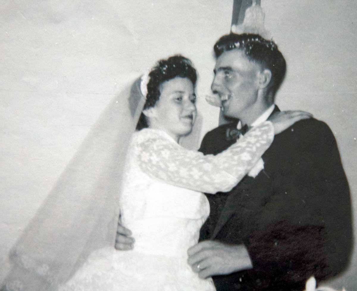 In the mid 1950s, young people usually met at dances. Jack and Betty became acquainted at a dance at the Bidwell Hall in 1958. Jack was playing drums and violin with his band, The Manitoulin Serenaders. “Jack asked to take me home,” Betty adds with a smile. Jack confesses, “I was trying to find out her name before we left but nobody knew it. Isabelle Skippen was driving us home. Luckily, Betty lived between the Bidwell Hall and our house, so we found out who she was when we stopped at her farm.”
