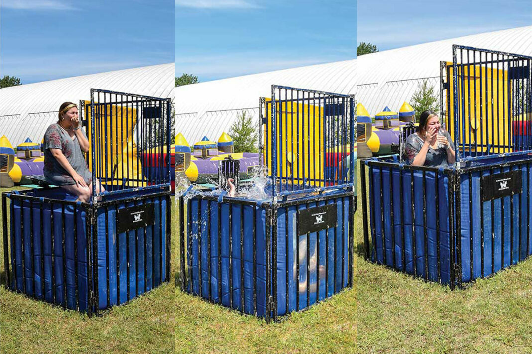 Sheguiandah First Nation Junior Chief Xoë Roy (who is also The Expositor’s production manager) braved the frigid waters of the dunk tank during a Thursday afternoon fundraiser for the youth of the community. Balls were $5 each and some hearty souls, like Ms. Roy, sacrificed themselves for the greater good. The dunk tank fundraiser netted $279.