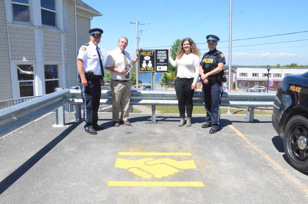 “There is always someone here,” noted Detachment Commander Staff Sergeant Kevin Webb as he joined Northeast Town CAO Dave Williamson, Community Services Officer Constable Marie Ford and OPP summer student Kylie Cranston in unveiling the Safe Trade site in a brief ceremony held on Thursday, June 28.