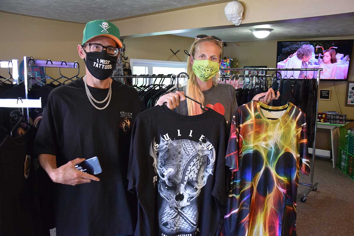 The articles for sale at Pattoos Ink include an extensive collection of t-shirts, a world-famous brand known as the Sullen Art Collective. Starting with a tattoo artist tee in 2001, more than 200 artists worldwide have put their names on their designed articles of clothing. There is a women’s clothing line too for the Sullen Angels, also with beautifully designed tops and hoodies. The Giles also sell pieces by local artists to do their part to give back to the community. Artists Jade Wyman, 10, and Rebekah Putman, 15, have their art on display. The Giles also expect to get other artists interested in having their work exhibited at this unique shop.