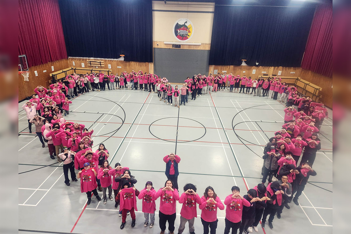Officers and staff with Wikwemikong Tribal Police Service attended the Wasse Abin High School in Wiikwemkoong Unceded Territory to proudly stand with the students in support of Pink Shirt Day in Canada, February 26. The day is held annually to bring awareness to eliminate bulling and discrimination in all its forms in Canada.