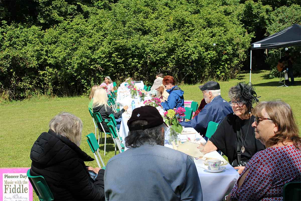 “The members of the Central Manitoulin Historical Society are volunteers at the Museum,” said Alison Sloss, events coordinator for Central Manitoulin Township. “They give tours and run programs all summer long. This event today is a way of saying thank you to them and to our student volunteers.” Ms. Sloss, along with Museum Curator Mnawaate Gordan-Corbiere organized the 1920s-themed tea party on the back lawn at the Pioneer Museum. There were games, refreshments, and live music was provided by George Williamson.