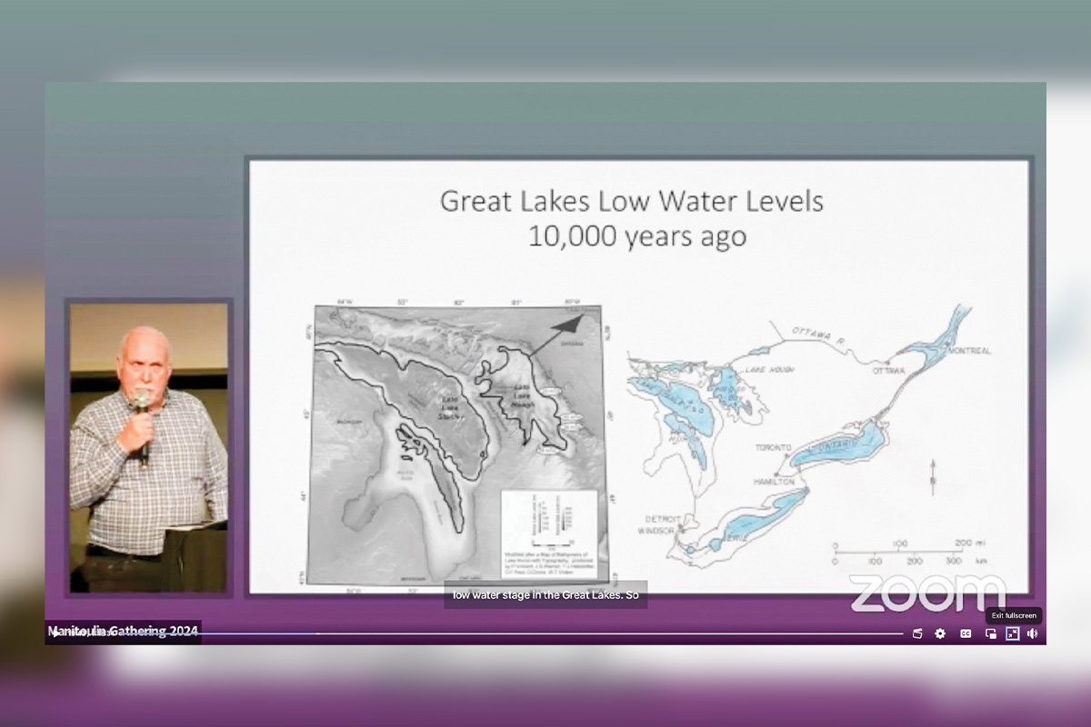 Dr. Fox took participants in the public talk through the history of the region, noting that migration to the Island’s environs took place some 10,000 years ago during the retreat of the last ice age—before Manitoulin was even an island and the great Algonquin Lake covered much of the land.