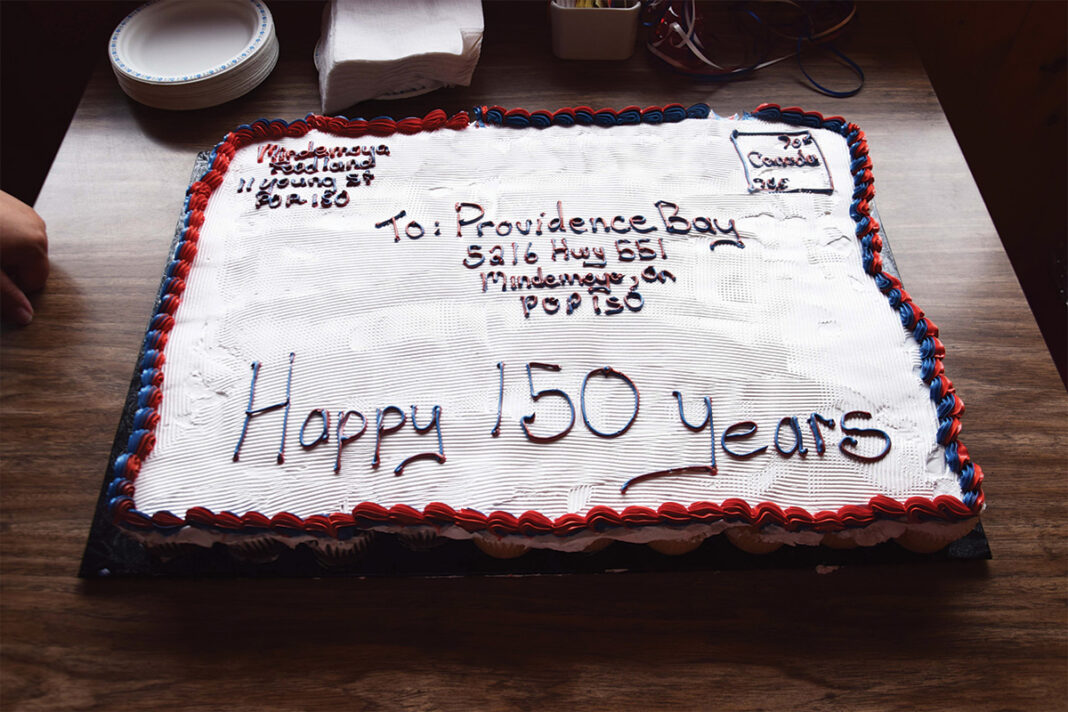 PROVIDENCE BAY—A sizable group of local residents dropped into the dining room of the Huron Sands Motel and Restaurant in Providence Bay during one of the last days of August to commemorate 150 years of the Canada Post office serving the community.