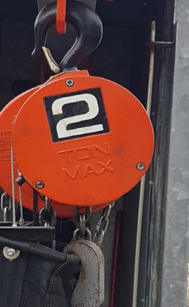 The hoists are described as CM “S” Cyclone Hand Chain Hoists – Red in Color, rated for 2 ton with 30 feet of hoist chain.