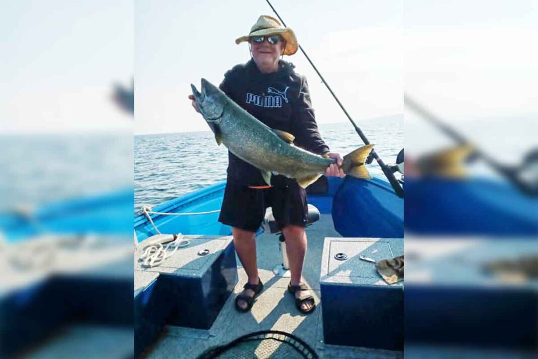“Someone said to me recently there are no fish in Gore Bay. I proved them wrong,” stated Tim MacTaggart of Kagawong, who on Thursday, August 7 caught a Chinook salmon that measured 35 and a half inches and weighed 18 pounds.