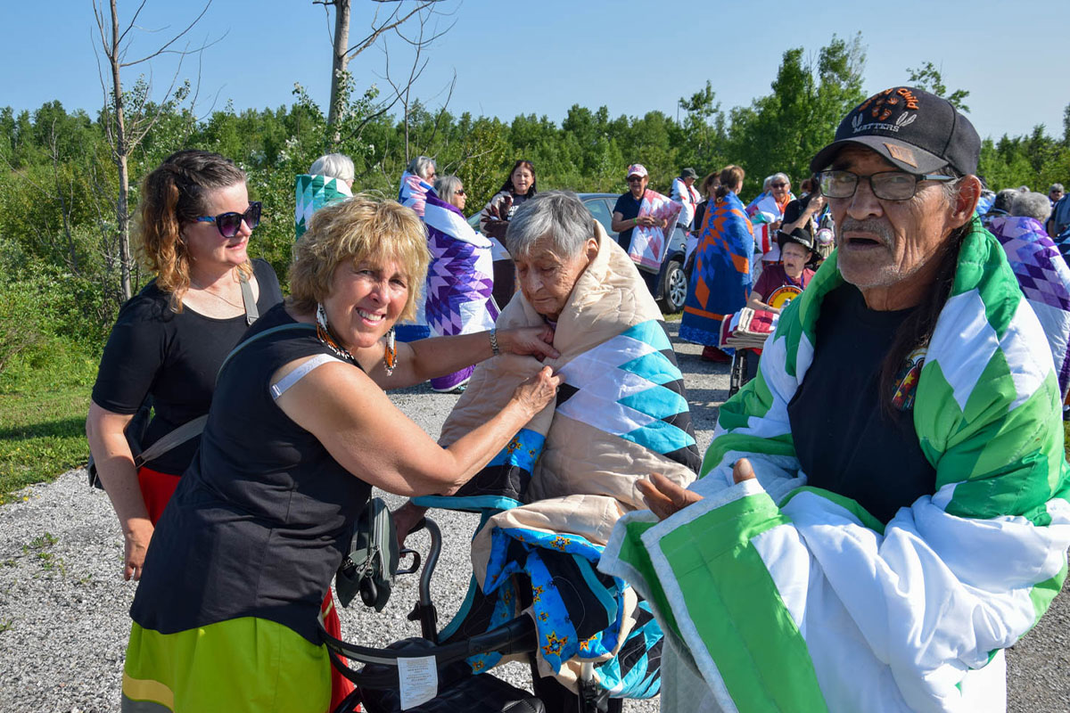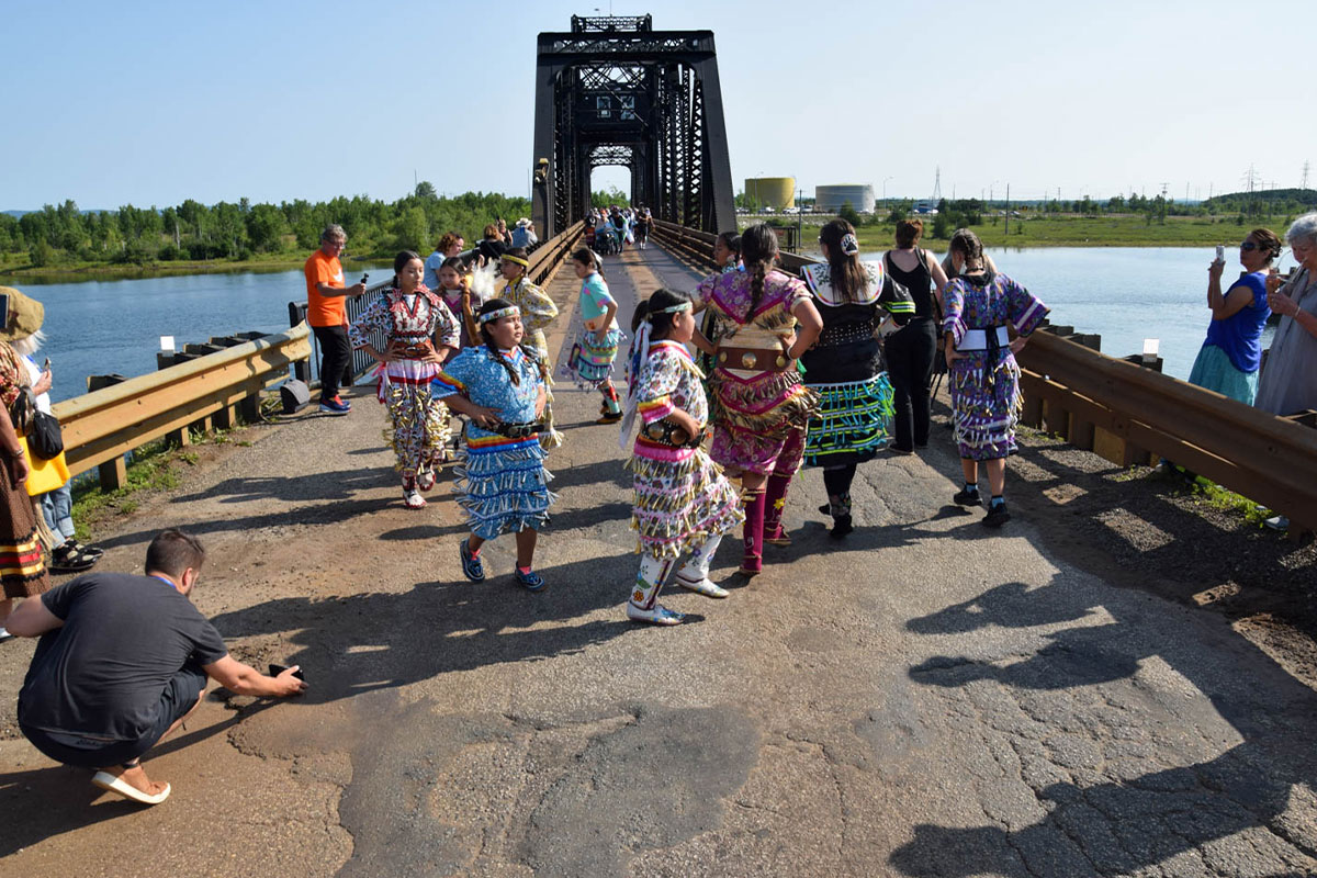 “This was very moving,” said Algoma-Manitoulin-Kapuskasing MP Carol Hughes, who along with Algoma-Manitoulin MPP Mike Mantha were credited with ensuring that the celebration and bridge crossing took place with the blessing of the Ministry of Transportation and arranged for a police escort. “The resilience, the strength and the determination that is out there, not only for the residential school survivors, but for those who support and want to ensure that their stories continue.” Ms. Hughes praised Ms. Lavallee for her determination to cross the bridge on foot, despite having to use a walker. “I am so glad I was able to play a very small part in helping to put the blankets on and assisting in getting things ironed out.”