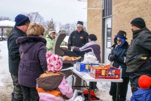 Inside the municipal complex the library hosted a book sale, a bake sale, and remained open for the day. Movies were provided for children and young people who needed a break from the cold. Volunteers for the Little Schoolhouse and Museum barbecue took refuge inside the doors when not serving up hot dogs and sausages to hungry participants. Tehkummah Community Hall was packed for the progressive euchre tournament. Euchre was followed by a Bowl and Roll chili dinner.