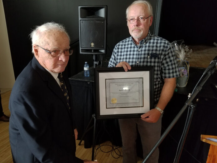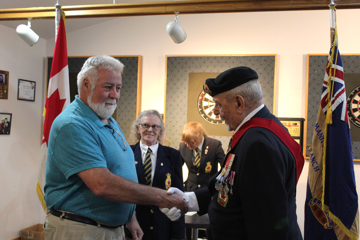 Dave Patterson received a 50 year Associate Member service Award from the Royal Canadian Legion Branch 514 in Gore Bay last Friday evening. From left is Dave Patterson, Marilyn Clarke, president, and Jim Kiviaho.