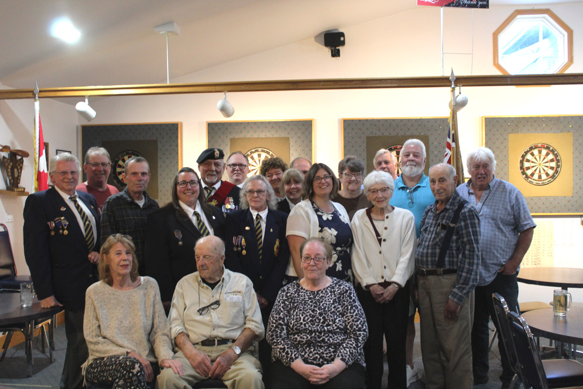 The Royal Canadian Legion Branch 514 held its annual Honours and Awards presentations last Friday. Along with executive bars and long service pins being presented, certificates of appreciation were handed out. Associate, ordinary and affiliate member awards were presented. Included in the presentations was a 50 year associate member award to Dave Patterson. In photo, from left, back row, are Leigh Major, Drew Purvis, Bob Clark, Beverly Wright, Jim Kiviaho, Mike Lalonde, Marilyn Clarke, Joan Hoekstra, Annie Porter, Jack Clark, Patti-Jo Woods, Bonnie Patterson, Eldene Longhurst, Brian Bainborough, Dave Patterson, Herakles Tsambis, Vic Noble. Front row sitting, Tony Davy, Loyalle McDougall and Anne Graham.