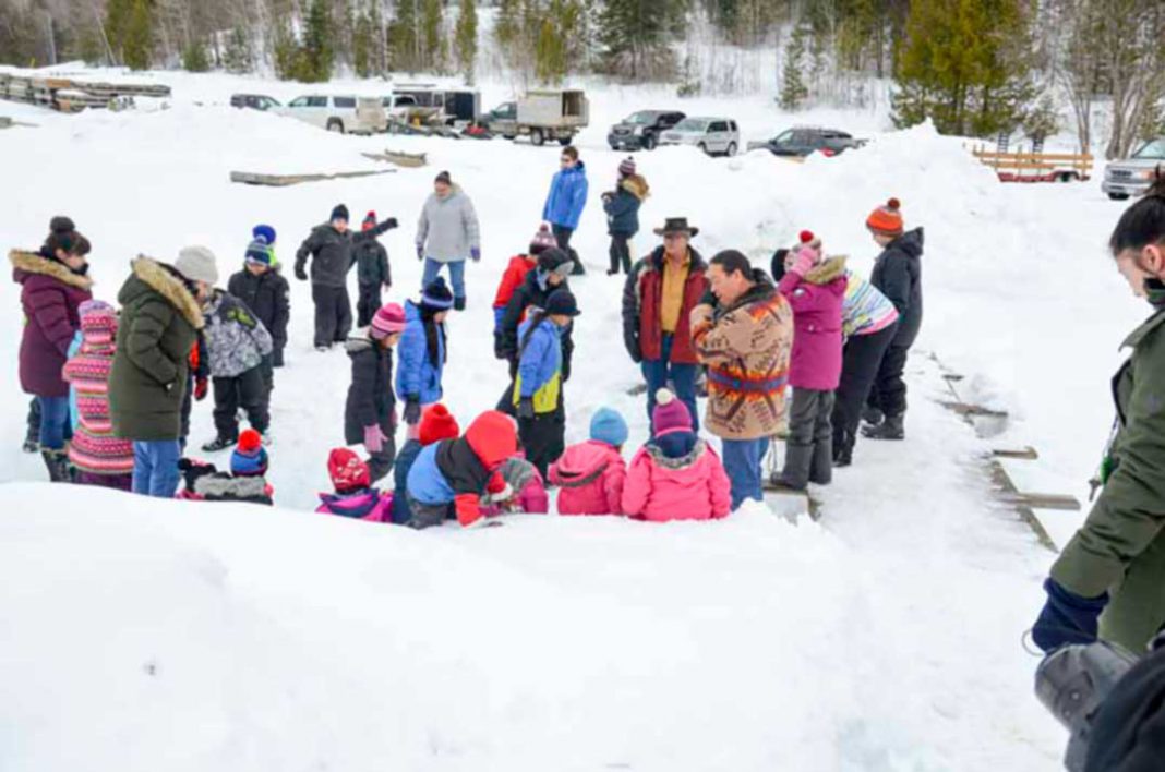 On Friday, February 17 the students scooped the now well-hatched fry from the micro-hatchery in their classroom and placed them into a white plastic bucket for the trip to Birch Island’s J & G Marina, where a hole had been cut in the ice in anticipation of their arrival.